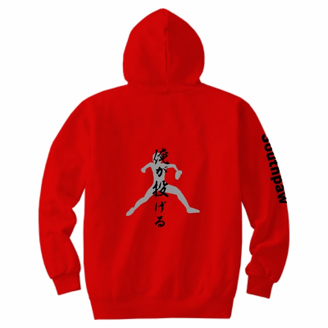 俺が投げるとサウスポーの組み合わせパーカーです。 バックプリントと右袖にプリントしてます。 この商品画像はオリジナルプリント.jpで生成したイメージです。実物とは異なる場合がありますのでご注意ください。