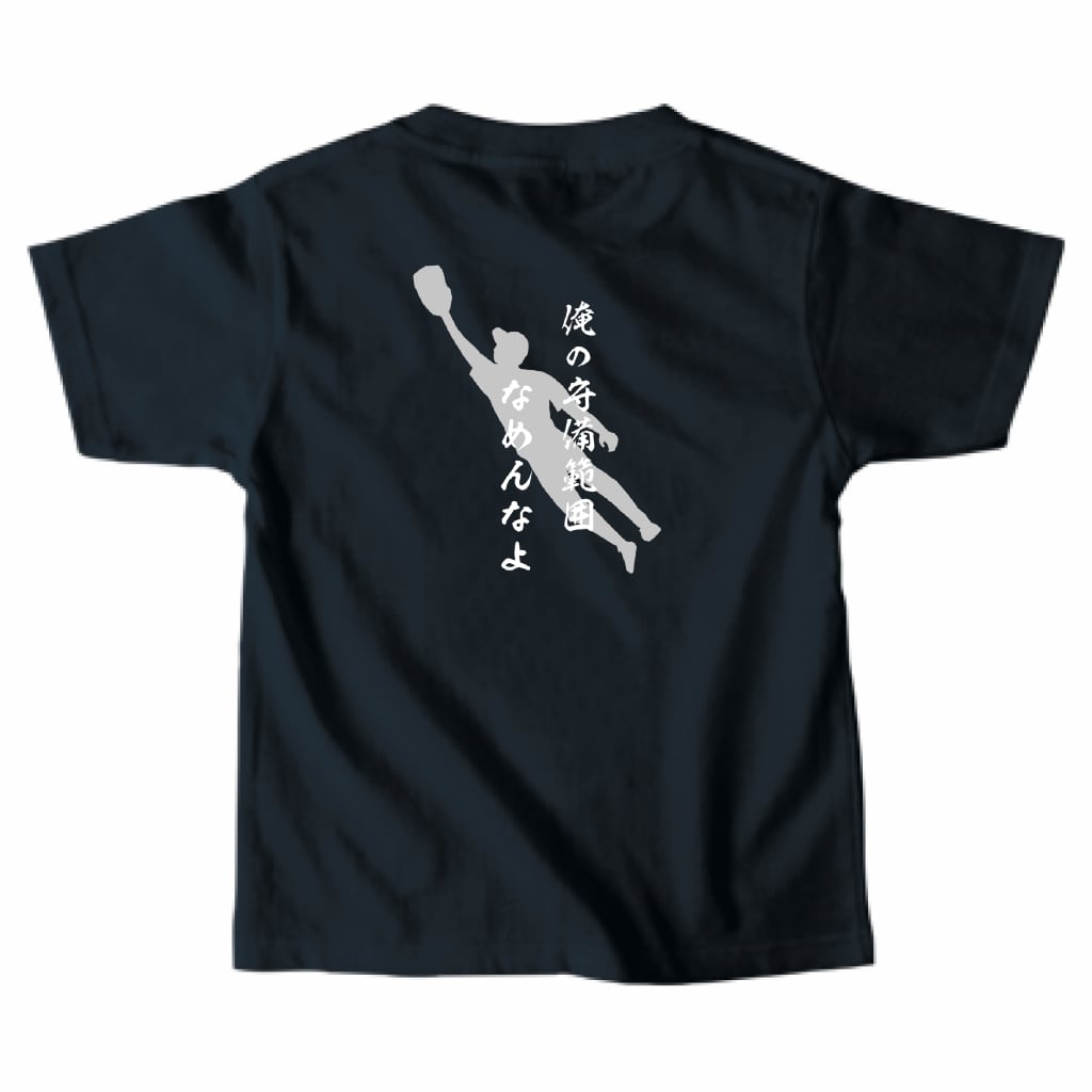 大人気シリーズ 守備位置シリーズ 守備範囲なめんなTシャツキッズ バックプリントネイビー 守備範囲が一番広いセンターはどんな球でも取っちゃう! 外野の両サイドに指示を飛ばしたり、自身でもファインプレーしたり頼もしい存在です。 そんなあなたにぜひ! この商品画像はオリジナルプリント.jpで生成したイメージです。実物とは異なる場合がありますのでご注意ください。